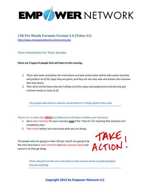 Here is the list of lessons in Empower Network $15K Per month formula: