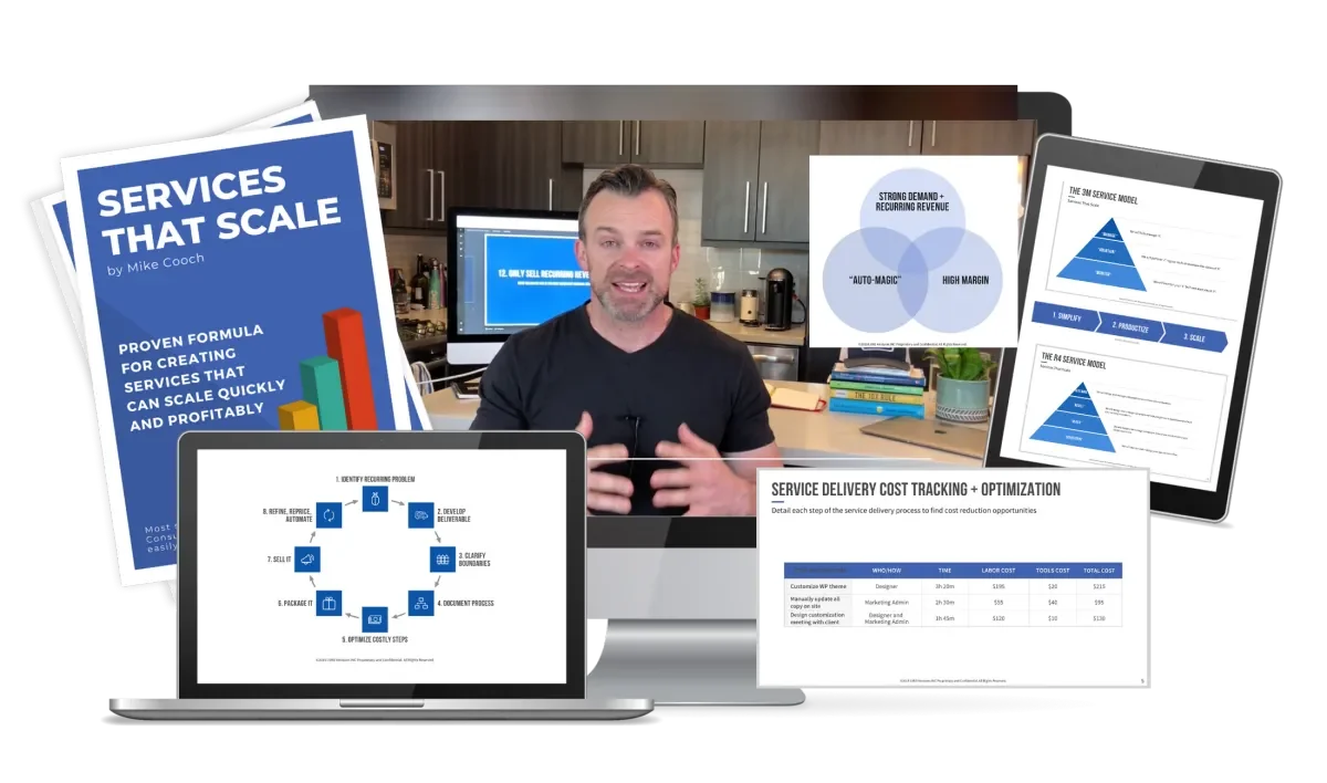 Mike Cooch’s “Services That Scale” unveils powerful strategies for growing a service-based business. This program equips you with tools to streamline operations, increase profitability, and expand your client base while maintaining quality service delivery.